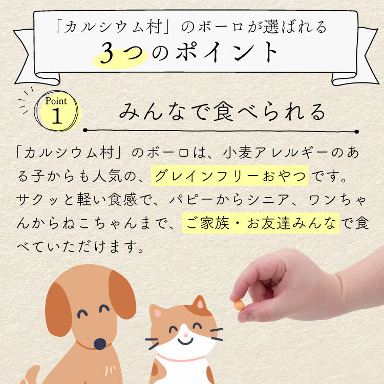 子犬でも老犬でも食べやすい、家族み〜んなで食べられるオヤツになっています。