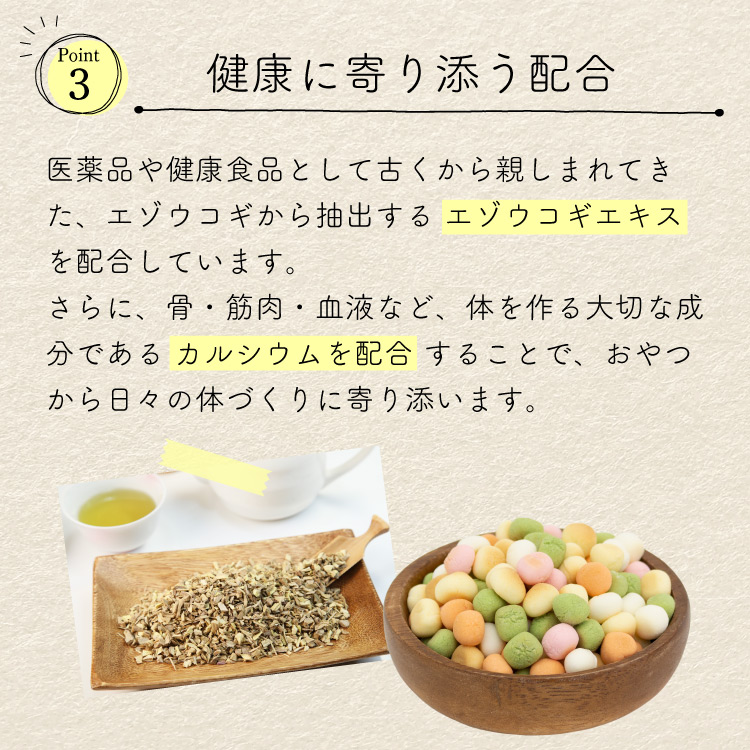 美味しいだけのおやつじゃない、エゾウコギエキス配合のスグレモノおやつ「カルシウム村のやさい畑」